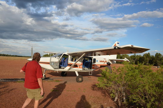 Um halb fünf begeben wir uns zur Rezeption um uns mit dem Piloten für unseren Flug zu treffen. Als der Pilot die Passagierliste sieht, macht er uns klar, dass er nicht zwei sondern nur noch eine Person mitnehmen kann. Wir wurden falsch informiert. Jürg überlässt mir grosszügig seinen Platz, ist aber hässig. Nicht über die Tatsache, dass er nicht mitfliegen kann (darüber ist er recht glücklich...), aber über das Theater bis das klar war.