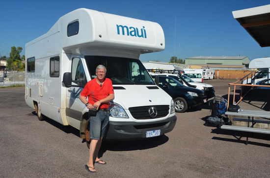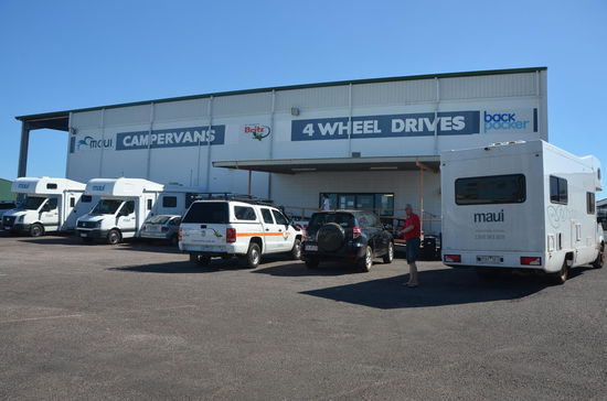 Um halb zehn verlassen wir den Caravanpark und fahren 20 Kilometer auf dem Stuart Highway nach Darwin hinein. In einem Industriequartier finden wir die Maui Basis und geben unser liebgewordenes Gefährt zurück. Jürg schaut sich das Ganze äusserst misstrauisch an, ist ihm doch die Abgabe des Campers in Las Vegas noch in bester Erinnerung, wo er sich wegen zwei Kratzern, die nicht von uns waren, grün und blau geärgert hat. Doch hier läuft alles äusserst entspannt ab. Wir kriegen das Geld für unsere gekauften Campingstühle zurück, eine Dame läuft ums Auto herum und schaut sich schnell im Innern um und das war's! Alles paletti! Wir sind angenehm überrascht.