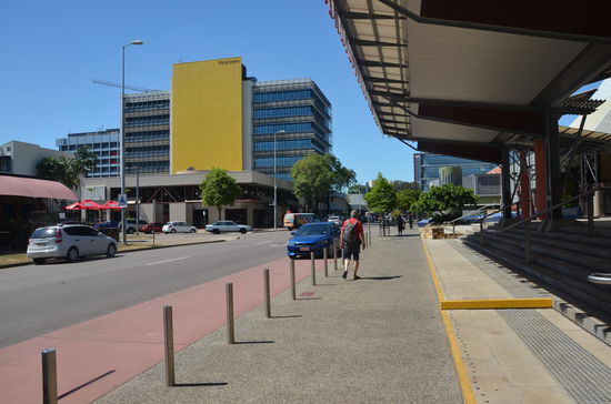 Man ruft uns ein Taxi, das nach einer Viertelstunde eintrifft. Irgendwie fühlen wir uns nackt ohne Camper, doch neugierig schauen wir uns die vorbeiziehenden Quartiere Darwins an. Nach 15 Minuten erreichen wir die Esplanade und damit unser Hotel.