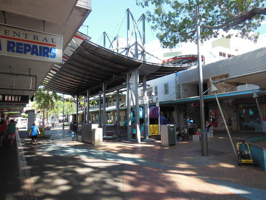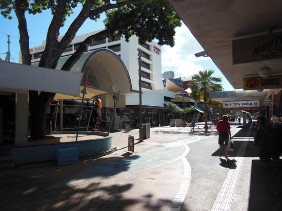 Am Ende der Fussgängerzonen erblicken wir die roten Hop-on-hop-off-Busse. Die werden wir morgen gerne benützen um Darwin ausgiebiger kennenzulernen. Doch für heute reicht es. Gemütlich bummeln wir wieder unserem Hotel zu. In einer Seitengasse erblicken wir noch einen Outdoorladen. Neugierig besuchen wir diese grosse Halle und staunen, was es hier alles zu kaufen gibt. Zelte jeglicher Grösse, Schlafsäcke und alles, was es zum Überleben im Outback braucht! Paradiesisch... aber für uns zu spät.