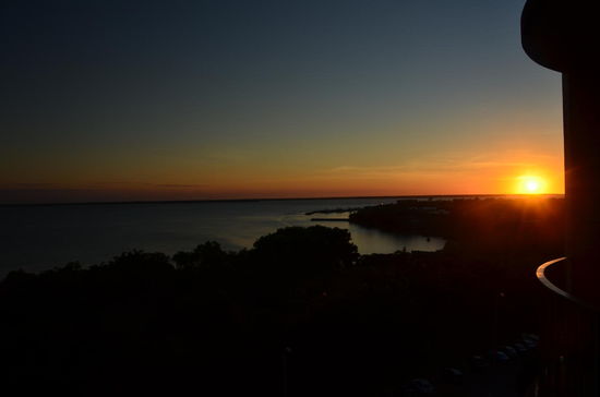 Im Einkaufszentrum Coles kaufen wir uns ein kleines Abendessen. Sandwiches und Joghurt. Dann gehts zurück in unser Hotel. Dort dürfen wir noch einmal einen schönen Sonnenuntergang geniessen.
