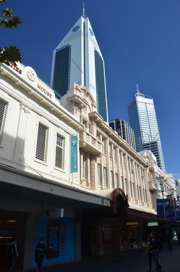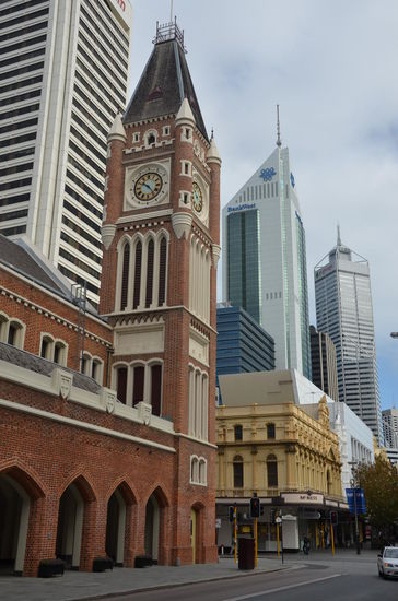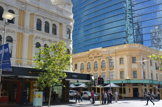 Mit dem Auto fahren wir nach Downtown Perth. Für die vielen Ab- und Zufahrten auf dem Freeway ist das Navi wenig hilfreich und ich orientiere mich lieber an den Schildern. Wir verlassen den Freeway und gelangen auf den Riverside Drive. In der Hay Street stellen wir unser Auto in einem Parkhaus ab. Zu Fuss gehts in die Einkaufspassage der Murray Street. Langsam schein auch Perth zu erwachen. Immer mehr Menschen shoppen in der Fussgängerzone.