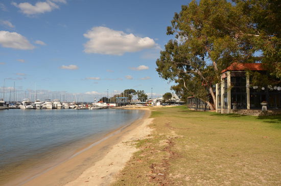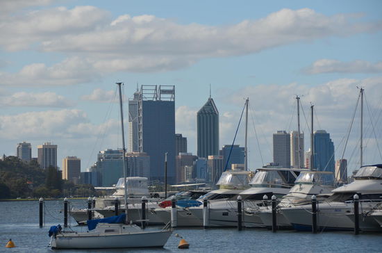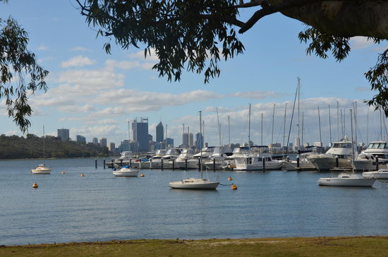 Irgendwann haben wir genug vom Shoppen und kehren zum Auto zurück. Jürg möchte unbedingt noch einmal nach Fremantle an den Hafen. Über die Mill Point Road umfahren wir den Swan River und finden im Sir James Mitchell Park einen schönen Aussichtspunkt, wo wir die Skyline von Perth bewundern können.