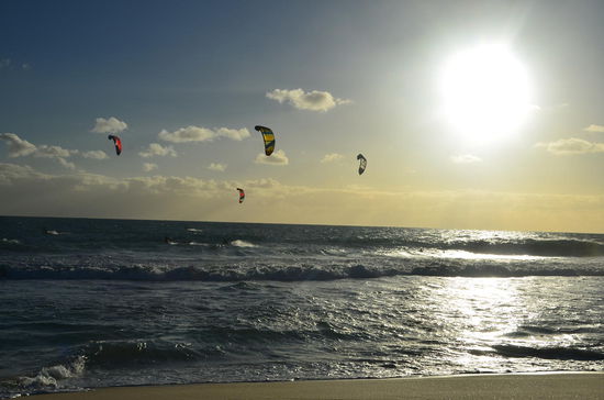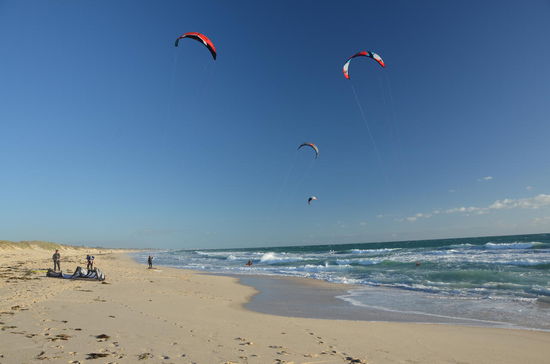 Das Meer rauscht wie verrückt. Der Wind bläst heftig und man sieht über die Dünen die Drachen der Kite Surfer. Also nichts wie an den Strand!
