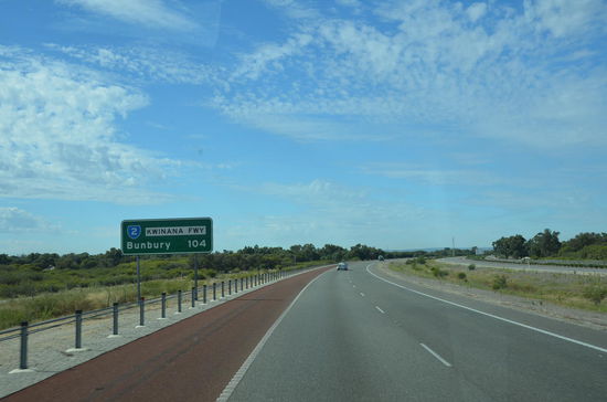 Jedenfalls so lange bis ca. 10 Kilometer vor Busselton Jürg plötzlich ein beängstigendes "oi oi" ertönen lässt. Zwei Warnlampen leuchten und das Gaspedal vergisst seine Aufgabe und gibt trotz aktivem Fusseinsatz keinen Speed mehr. So zuckeln wir mit 60 km/h bis Bunbury. Ich verfluche alle guten Reise-Geister. So etwas passiert doch immer anderen, aber doch nicht uns! Doch Jürg lässt sich nicht aus der Ruhe bringen. Auf dem Parkplatz eines Gartencenters stellt er den Camper ab und wartet ein paar Minuten. Dann lässt er das Auto wieder an und alles läuft wie wenn nie etwas passiert wäre. Er meint, dass dies bei der vielen Elektronik mal passieren könnte. Man müsste das im Auge behalten. Aber im Moment läuft alles wieder normal. Mir fällt ein Felssturz vom Herzen...
