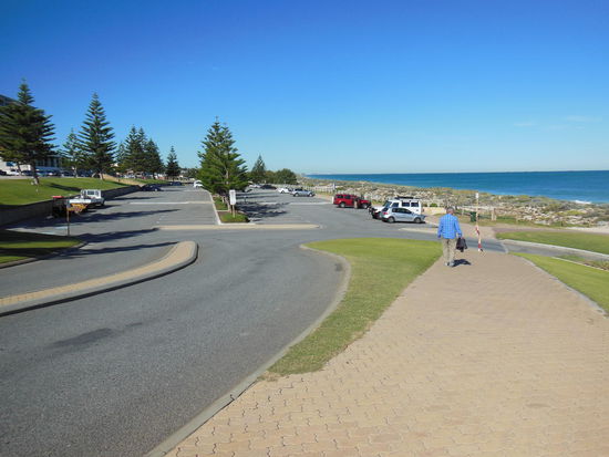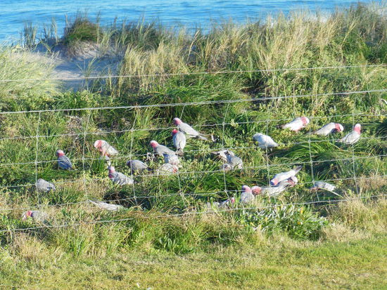 Mit dem Auto begeben wir uns auf den Parkplatz des Amphitheaters. Wir sind noch zu früh um zum Flughafen zu fahren und so wollen wir noch einen morgendlichen Spaziergang ans Meer unternehmen. Wir geniessen die salzhaltige Luft, das Rauschen der Wellen und die wärmende Morgensonne. Überall erblicken wir Schwärme von schönen Kakadus. Der liebe Gott gab ihnen zwar ein schönes Aussehen, aber bei der Stimmvergabe hat er völlig versagt. Es wird ohrenbetäubend laut herumgekrächzt und immer wieder erheben sich Schwärme in die Lüfte um gemeinsam ein paar Runden zu fliegen. Ein schöner Anblick!