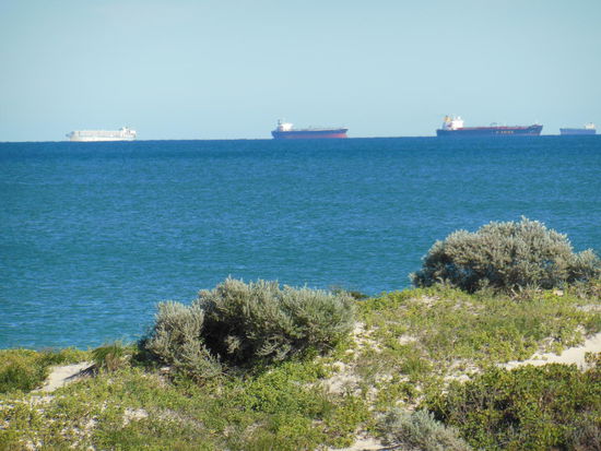 Wir setzen uns noch ein letztes Mal auf die Stufen des Amphietheaters. Auf dem Meer ist viel los. Grosse Frachtschiffe fahren am Horizont Fremantle oder dem offenen Meer zu. Zudem erlicken wir plötzlich ein komisches Konstrukt, das langsam näher kommt und grösser wird. Es ist eine Bohrinsel, von einem Schiff gezogen. Das ist ja spannend!