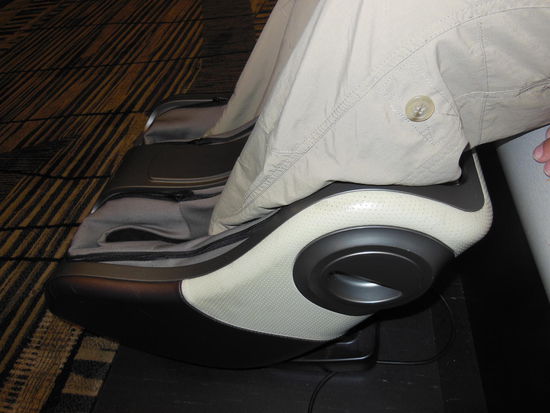 Zeitverschiebung gibt's noch keine. Perth und Singapore befinden sich in der selben Zeitzone. Statt in die Lounge zu gehen, geniessen wir den Transferbereich, probieren gemütliche Sessel aus, trinken feinen Starbuckskaffee und lassen unsere Füsschen immer wieder in den Massagesesseln durchkneten, auch wenn das manchmal sogar schmerzhaft ist. Aber es entspannt. Die letzten paar Singapore Dollar geben wir auch noch aus. Die Zeit vergeht im Fluge.
