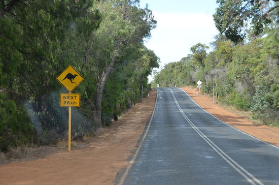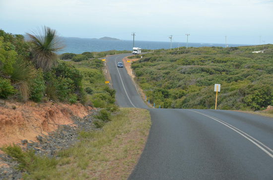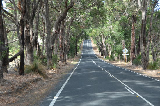 Auf dem Bussel Highway verlassen wir Busselton. Kurvig gehts in Eukalyptuswälder hinein, parallel zur Küste des indischen Ozeans. Statt auf dem Highway 10 wechseln wir aber auf die Caves Road und dort gehts achterbahnartig kurvig rauf und runter. Ich bin froh, dass ich meinen Berufschauffeur am Steuer habe. Die Strasse ist recht eng und am linken Strassenrand hat es einen Asphaltabsatz, den ich sicherheitstechnisch nicht überfahren möchte. Aber Jürg ist sich die Breite solcher Fahrzeuge gewöhnt und kurvt munter durch die einsamen Wälder. Immer wieder überraschen uns grosse Waldllichtungen, wo sich meistens riesige Weingebiete mit den dazugehörigen schönen Weingüter befinden. In der Nähe befindet sich Margret River, welches eines der berühmtesten Weingebiete Australiens ist. Wir entscheiden uns aber klar gegen eine Weindegustation. Fahren und Trinken ist eine schlechte Idee.