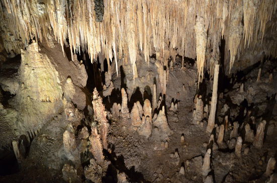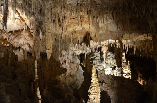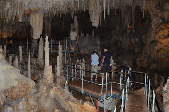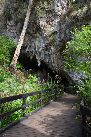 Dafür besuchen wir eine der zahlreichen Höhlen, die sich hier befinden. Schon zuhause haben wir uns für die Mammoth Caves entschieden, da man diese ohne Führung anschauen darf. Am Eingang erhalten wir einen elektronischen Guide mit Kopfhörer und dann dürfen wir uns in die geheimnisvolle Unterwelt begeben. Schön angelegte Holzstege, Brücken und Treppen führen uns durch die steinerne Märchenwelt und schon bald fühlt man sich wie Bilbo Baggins auf dem Weg zu Gollums Cave. Hört man da nicht die Schritte von Goblins? Jürg findet meine Phantasie gehe mal wieder mit mir durch. Was soll's... jedenfalls ist die Höhle sehr interessant anzuschauen. Wir sehen sogar uralte Fossilien wie der tasmanische Tiger, der über 35 000 Jahre als sein soll. Echt eindrücklich!