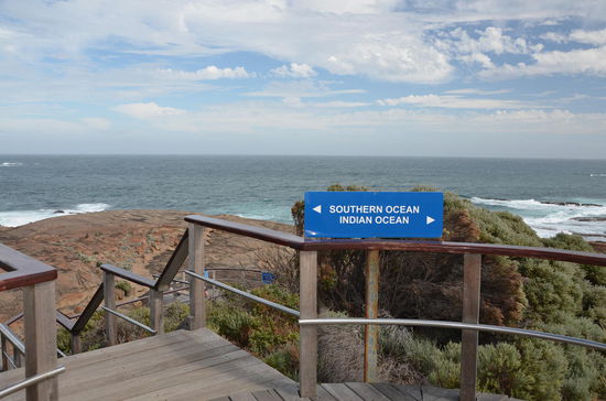 Hier befinden wir uns an einem prominenten Platz. Nicht nur dass einer der grössten Leuchttürme Australiens den Ort verziert, hier treffen der indische Ozean und die Tasmansee aufeinandern und entsprechend wild ist die See. Hier befinden wir uns am südwestlichsten Punkt Australiens. Obwohl dies nicht der südlichste Punkt ist, gilt er zusammen mit dem Kap der guten Hoffnung und Kap Hoorn als eines der drei "grossen" Kaps der Südhalbkugel und als symbolischer Wegpunkt für das Erreichen oder Passieren von Australien für die Hochseeschiffahrt vom oder zum indischen Ozean. Wikipedia jedenfalls beschreibt die Wichtigkeit von Cape Leeuwin mit diesen Worten.