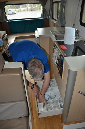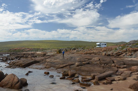 Langsam beginnen wir wieder durchzuschlafen, auch wenn wir am Morgen kaum die Augen aufbringen. Um halb acht stehen wir auf. Draussen ist es bewölkt und ziemlich kühl, so dass wir drinnen frühstücken. Bevor unsere Reise weitergeht, erledigen wir wichtige Aufgaben: Leeren des Grauwassers sowie der Toilette und Auffüllen des Weisswasser. Da unser Camper dank Baum technisch krumm steht um zum Stöpsel zu gelangen, wo man das Grauwasser leert, lernen wir nette Nachbarn kennen. Jim aus England bietet uns seinen Platz an, wo wir nach kurzem Manöverieren endlich Wasser ablassen können und eine andere nette Dame aus Perth verwickelt uns auch noch in ein Gespräch.