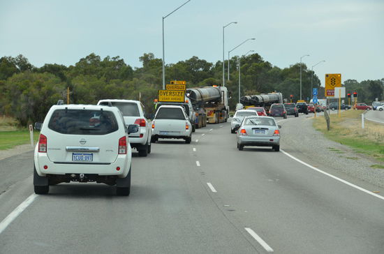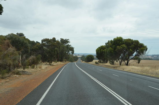 Heute lassen wir den Tag ein wenig früher angehen. Nach wie vor beherrscht grau in grau den Morgenhimmel. Nach dem Frühstück verlassen wir um halb neun Albany und auf dem Highway 30 geht unsere lange Fahrt zurück nach Perth los. Bis Mount Barker fährt Jürg, dann kommt der Moment, wo ich mich zum ersten Mal ans Steuer setzen muss. Erstaunlicherweise fühle ich mich schnell wohl und habe auch die Breite des Gefährts im Griff. Jürg ist stolz auf mich und ich auch!