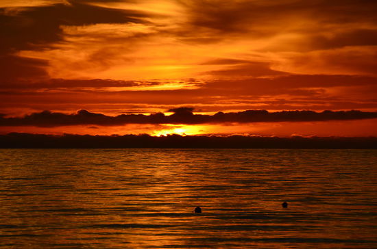 Um vier Uhr gibt es bei uns Abendessen, was gewisse Senioren leicht erstaunt zur Kenntnis nehmen. Bratkartoffeln, Kalbsplätzli und Pfirsiche aus der Dose sind unser heutiger kulinarischer Höhepunkt. Danach geht die Sonne schon langsam dem Horizont zu und ich ahne, dass es einen Mega-Sunset geben muss. Jürg ist zu faul nochmals an den Strand zu kommen und so packe ich meine Kamera und düse alleine hinunter.