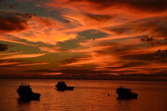 Auf unseren zahlreichen Reisen haben wir ja schon viele Sonnenuntergänge erlebt. Was ich aber hier erblicke übertrifft selbst die Afrika-Sunsets! Langsam schiebt sich die Sonne farbenfroh dem Horizont zu und die vielen Schleierwolken beginnen die herrlichsten Farben anzunehmen. Von Gelb geht es zu Orange, von Rot zu Rosa. Die Fischerboote bieten einen hervorragenden Vordergrund. Als die Sonne verschwunden ist, fängt der Himmel Feuer und glüht in den unglaublichsten Farben. Über den schönen Ferienvillen leuchtet ein strahlendes Pink und über dem Meer brennt der Himmel wie Feuer. Meine Kamera kommt nicht zur Ruhe und ich kann mein Glück kaum fassen eine solche Abendstimmung erleben zu dürfen.