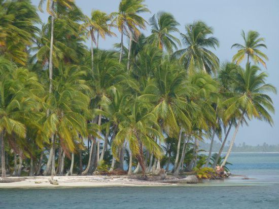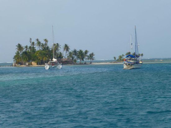 Am zweiten Tag, nach 350 km, tauchen gegen 22 Uhr die ersten Inseln des San Blas Archipels auf und das Meer beruhigt sich. Es sind fast ungefähr 365 kleine Inselchen (für jeden Tag des Jahreseine eine), fast alle mit weißem Sandstrand und Kokospalmen. Nur wenige sind von Angehörigen des Kuna-Volkes bewohnt, die hier schon immer eine Teilautonomie genießen und die Inseln selbst verwalten.