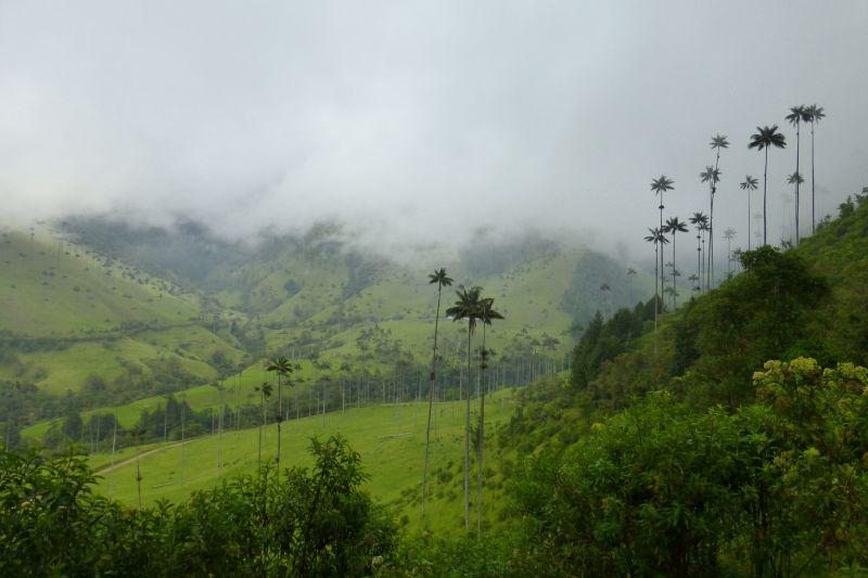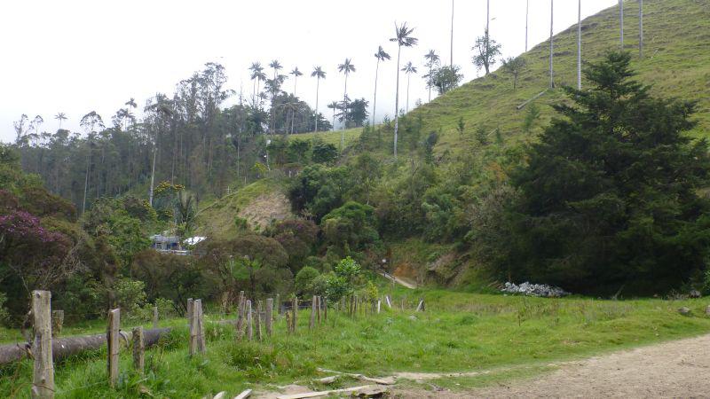 Zurück geht es in ein sehr idyllisches Seitental, hier wachsen viele bis zu 60m hohe Wachspalmen (Palma de cera) - der Nationalbaum Kolumbiens.