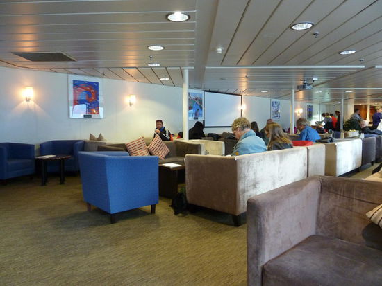 Das Einchecken am Fährterminal ging trotz der vielen Menschen auch ganz schnell und so war ich um 8:15 Uhr schon auf der Fähre und hab mich im Loungebereich bei Kaffee, Rührei, Speck und Würstchen stärken können. Das Auslaufen der Fähre verzögerte sich aber um 1,5 Stunden, denn die Fahrzeugdecks wurden bis ins letzte Eck mit PKWs und LKWs vollgestopft. Durch die Absage von einigen Fährüberfahrten gab es eine zeimlich lange Schlange an Fahrzeugen, die "abgearbeitet" werden mussten und das bedeutete für das normale Fußvolk eben auch warten. Ganz ehrlich, das Warten war jetzt nicht so schlimm. Ich bekam zu Essen und Trinken und hatte eine stabile Internetverbindung. Den Aufpreis für die Lounge waren mir die 40 NZD auf alle Fälle Wert. So hatte ich meine eigene Coach und viel Platz und eben alles was ich so brauchte.