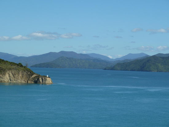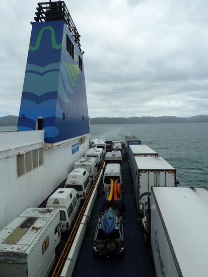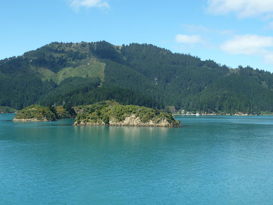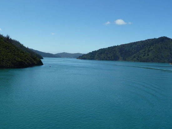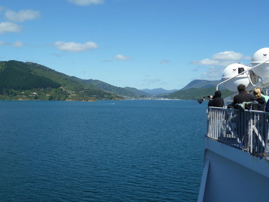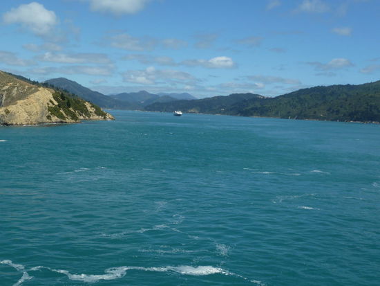 Nachdem wir in Wellington endlich gegen 10:30 Uhr bei stark bewölktem Himmel abgelegt hatten, ging es sozusagen der Sonne entgegen. Je weiter wir von Wellington gegen Süden fuhren,desto besser wurde das Wetter. Die Überfahrt an sich war ziemlich ruhig und selbst auf offenem Meer zwischen den beiden Inseln (was jetzt aber ein nicht alzu langes Stück ist) kam die Fähre nicht wirklich ins Schwanken.