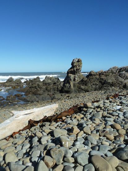 Dieser Teil der Ostküste von der Südinsel Neuseelands ist sehr rauh und schön zu fahren. Man fährt direkt am Meer entlang und teilt sich diese Streck mit der Eisenbahn. Einmal ist die Straße auf der Meerseite und einmal die Eisenbahn.