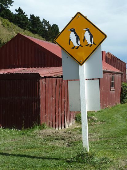 Gleich nach den Boulders kam die kleine Ortschaft Moeraki, die den Steinen auch ihren Namen gab. Ich bog Richtung Moeraki ab, denn ich wollte zum Katiki Point. Da steht nähmlich ein Leutturm und ich bin doch leicht Leuturmfanatisch, also wenn der schon am Weg liegt, dann muss der auch auf Bild. Und ich kann nur sagen, bin ich froh, dass ich zum Katiki Point gefahren bin und den Umweg in Kauf genommen habe (es war eine Sackgasse und die Straße war nicht befestigt). Es war nicht der Leutturm, der jetzt so fanzinierend war, nein es waren Gelbauchenpinguine, die unterhalb des Leutturms ihre Kolonie haben und man so gut wie durch die Kolonie läuft.