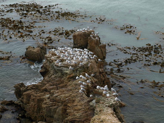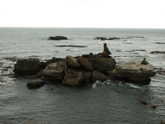 Trotz des Regens fuhr ich aber auch noch am Shag Point von der Hauptstraße ab, um zu sehen, was es an diesem Punkt für Bewohner zu begutachten gibt. Der Shag Point ist gut ausgeschieldert und somit waren einige Wohnmobile und PKWs am Parkplatz. Zu sehen gab es aber nicht viel, jedenfalls jetzt nichts was meine Gelbaugenpinguine hätte toppen können. Die Fur Seals hatte ich ja auch schon zuvor im Wasser spielen sehen, also machte ich nur ein Bild vom Felsen und den Möven und dann ging es ohne weiteren Zwischenstopp nach Dunedin.
