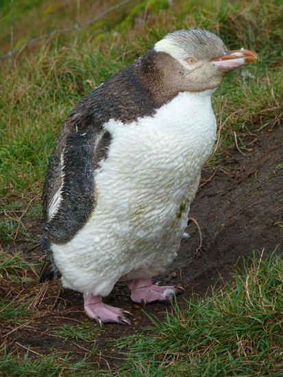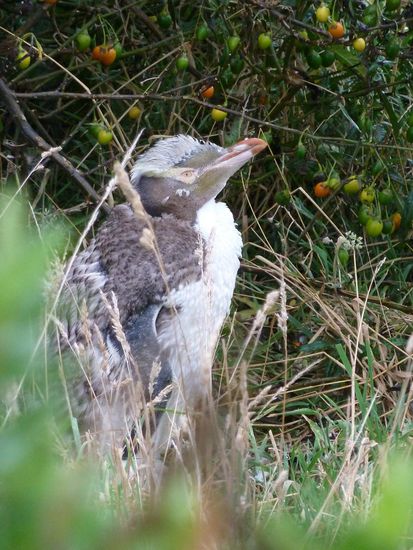 mein erster Gelbaugenpinguin - noch ein Kücken, aber doch schon fast ausgewachsen und fast kein Babyflaum mehr