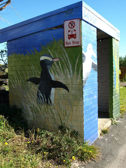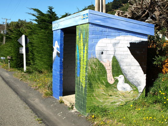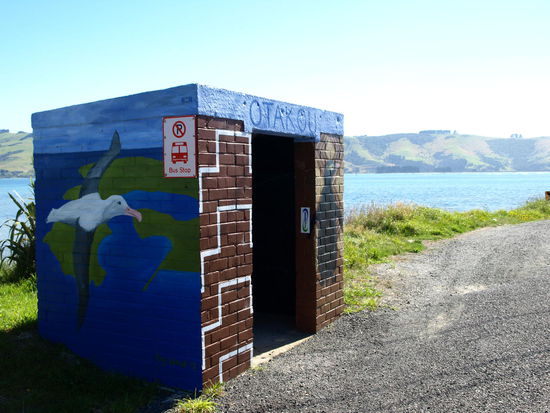 Ich fuhr bis zum Taiaroa Head, um dort den Leuchtturm und auch die Königsalbatross Kolonie zu besuchen. Unterwegs vielen mir die bunten Bushaltestellen auf. Hier ein paar Beispiele.