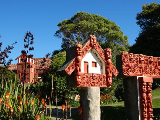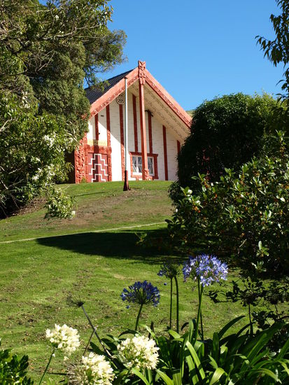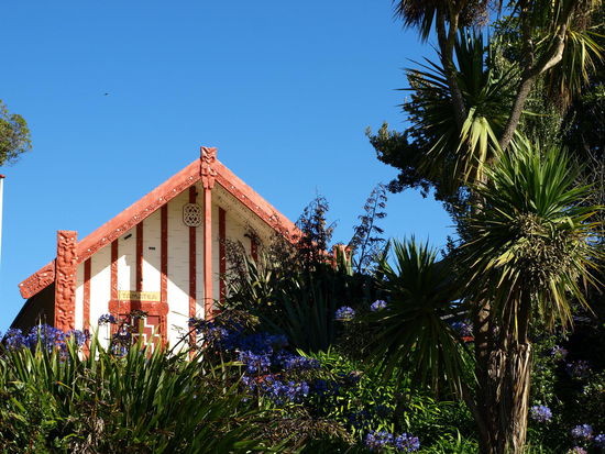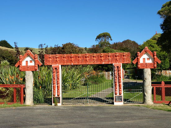 Aber nicht ohne noch einen kurzen Halt beim Marae von Otakou einzulegen. Bis jetzt hatte ich auf der Südinsel noch keine wirklich schönen Versammlungshäuser der Maories gesehen, aber das hier war wirklich wunderschön verziert und ein ziemlich großer Komlex.