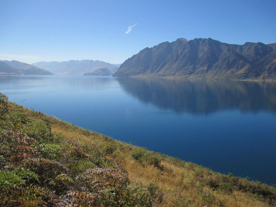 Es ging ersteinmal wieder am Lake Wakatipu vorbei, dann durchs Gibson Valley, den State Highway Nummer 6 folgend, nach Wanaka. Unterwegs das bekannt Bild, Weingüter und Seen. In Wanaka legte ich keinen Stop ein, denn ich wollte noch einige der Wanderwege entlang des Haast Pass Highways ablaufen. So hielt ich nur kurz am Lake Hawea und dann am Lake Wanaka zu einem Fotostop an.