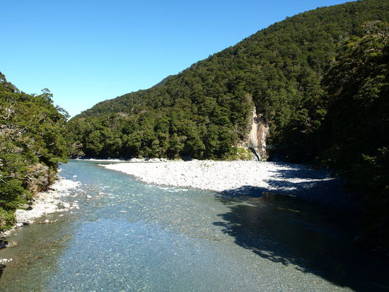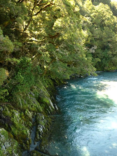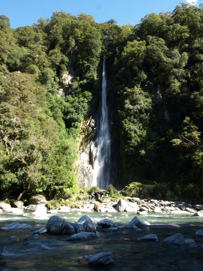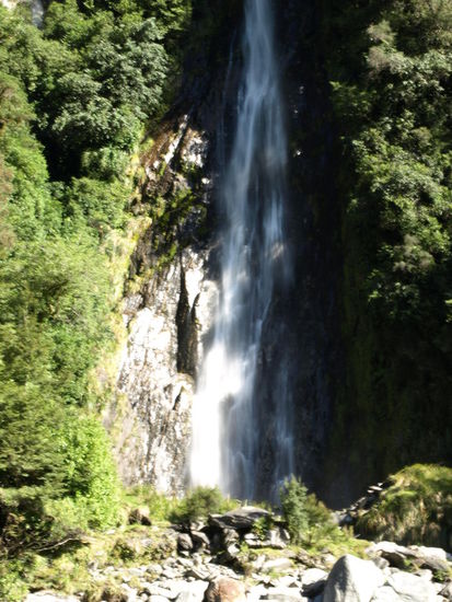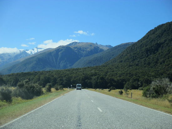 Schon vor der Ortschaft Makarora, kurz nach Lake Wanaka, änderte sich die Lanschaft schlagartig. Die karge Seenlandschaft wurde durch eine waldreiche Flußlanschaft abgelöst.