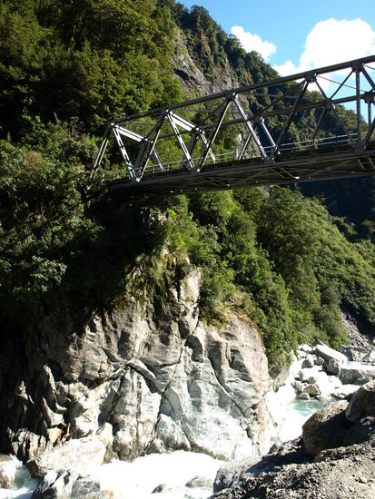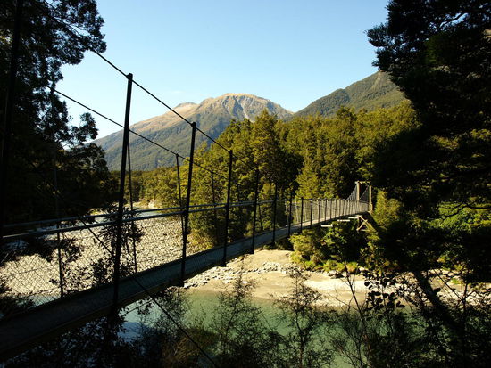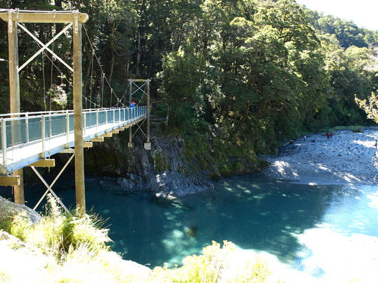 Es ging durch ein Waldstück hinunter zum Makarora River, dann über eine Swing-Bridge bis man bei den Blue Pools ankommt. Die Farbe des Wasser ist wirklich Blau und es macht einfach nur Spass über Schwingbrücken zu laufen