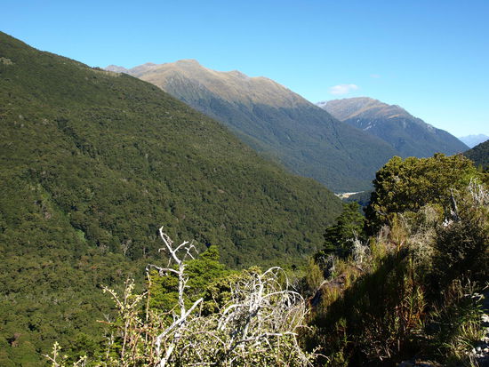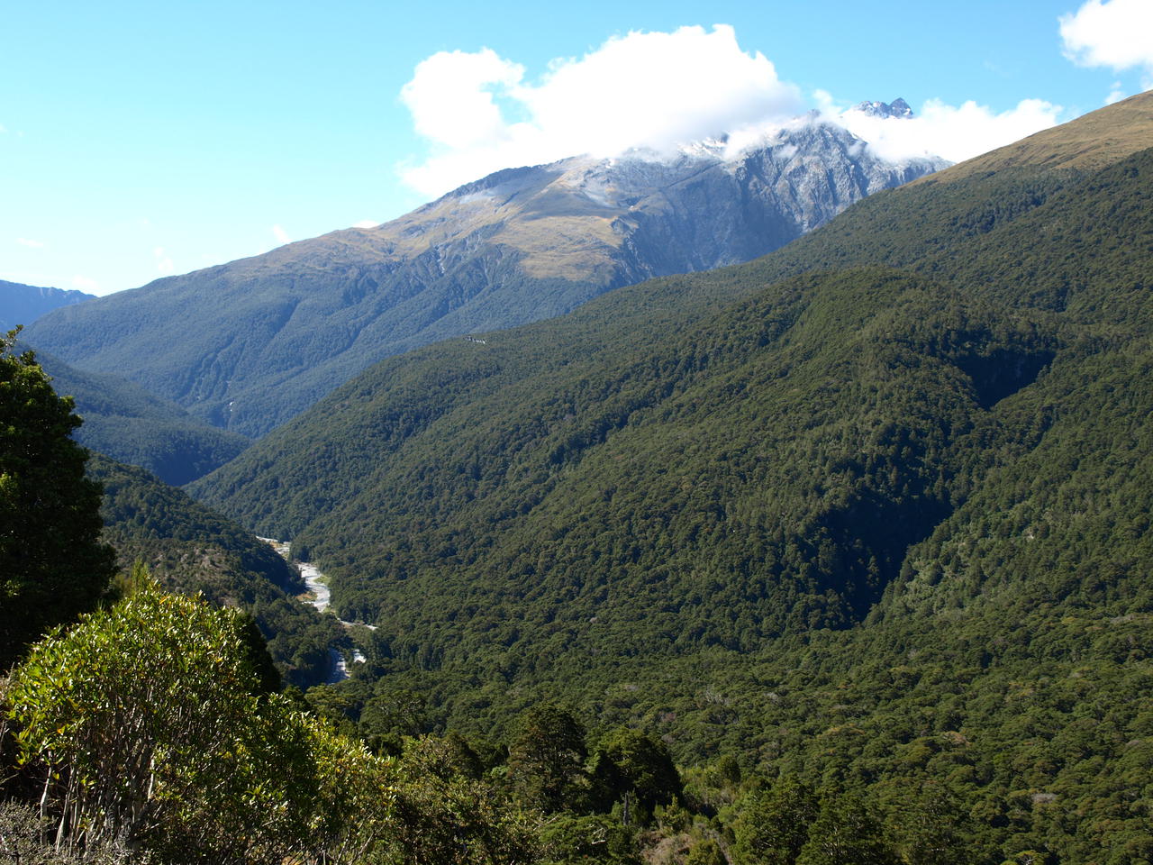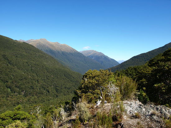 Meine nächste Wanderung führte mich dann steil bergauf zum Haast Pass Aussichtspunkt. Es ging wieder durch dichten mossbewachsen Märchenwald bis auf eine Anhöhe und von da aus konnte man den Blick über den Haast Pass schweifen lassen. Ich weiß nicht, ob ich noch mal da hoch gehen würde. Ich bin doch eher für flachere Wanderwege