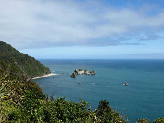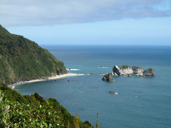 Die Strecke entlang der südlichen Westküste ist auch mit den üblichen Stops gut zu Fahren (auch mit Umweg über die Jackson Bay). Die kann man mitnehmen, muss man aber nicht. Der Süden der Westküste ist jedenfalls sehr "ursprünglich" und in ihrer Rauhheit schön. Trübes Wetter schadet der Atmosphäre gar nicht, aber natürlich ist Sonnenschein nie zu verachten