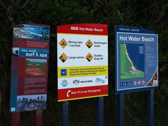 Nachdem ich in meine Cabin eingezogen bin, viel zum einziehen gab es ja nicht, ging ich dann gleich runter zum Hot Water Beach, denn es war kurz nach 17Uhr und Ebbe - also Sandbuddelzeit. Ich selber hab aber nicht gebuddelt, mir war da zu viel los und mir hat es gereicht in ein bereits gebuddeltes "Spa" zu steigen