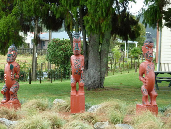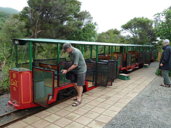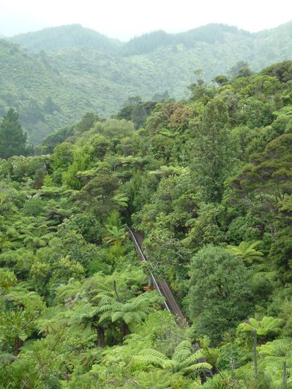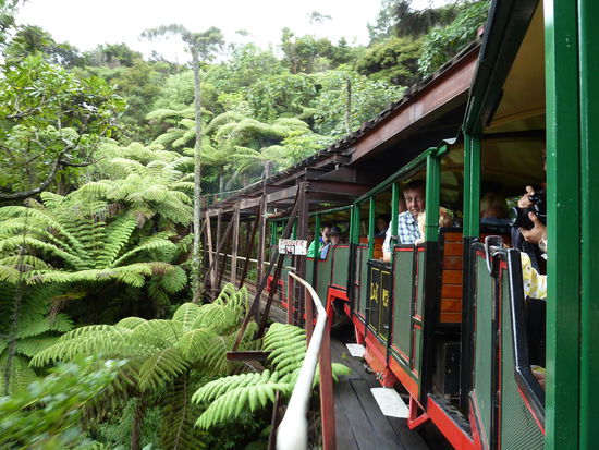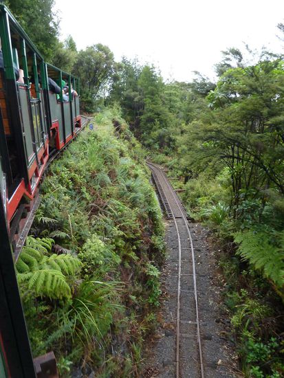 Am Mittwoch ging es dann direkt nach Coromandel Town. Ursprünglich wollte ich den Tag in Hahei mit einer Küstenwanderung zur Catheadral Cove beginnen, aber bei diesem blöden Wetter (es regnete leicht) war das für mich keine Option. So ist es dann anstatt Wandern ein gemütliches und ausgedehntes Frühstück in Hahei geworden - und ich hab ja noch den Donnerstag vormittag fürs Wandern (dachte ich mir). Während der ganzen Fahrt nach Coromandel Town hat es mal leichter und mal stärker geregnet und in Coromandel selbst regnete es weiter. Ich bin einfach durch die eine Hauptsraße geschlendert und hab mich mit Insektenschutz eingedeckt, denn die Sandflies hatten schon zugeschlagen oder soll ich lieber schreiben zugestochen. So gegen 13Uhr hat es dann endlich aufgehört mit dem Regen und ich habe diesen Regenstopp dann auch gleich genutzt und bin mit der Driving Creek Railway gefahren. Ist schon irgendwie irre, das das alles ein Einzelner über Jahrzehnte gebaut hat. Ich glaub da muss man wirklich Künstler sein