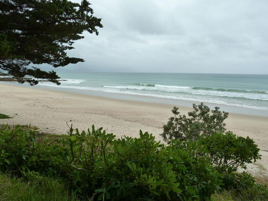 Nach einer dann doch Zikadenfreien Restnacht ging es dann am Dienstag weiter auf die Coromandel Halbinsel. Mein Übernachtungsziel war der Hot Water Beach Top 10 Campingplatz. Das Wetter war sonnig mit ein paar Wolken bei angenehmen 25Grad. Mein erstes Zwischenziel war Thames, sozusagen das Tor zu Coromandel. Früher was das mal eine Goldgräberstadt, aber viel konnte man davon nicht mehr sehen. Ich hatte mir das Städtchen etwas größer vorgestellt, aber in Neuseeland, jedenfalls auf Coromandel ist alles etwas "kleiner" als es auf den Karten wirkt. Ich bin da ein bischen durch die Straßen geschländert und dann ging es weiter der Westküste entlang. Die Strecke zu fahren ist sehr schön, man fährt immer am Meer entlang und kommt durch kleine Dörfer mit teilweise schönen Sandstränden. Leider nahm die Anzahl der Woken immer mehr zu und bald hatte ich dann einen komplett bewölkten Himmel. Zudem lässt es sich nicht so schnell fahren wie man dürfte, denn die Straßen sind schmal und SEHR kurvenreich. Selbst wenn man 100km fahren dürfte, wenn man mit 70km rumkurvt, dann ist das schon schnell. Dann schickte mich mein Navi auf die Straße 309 Richtung Hahei. Ich hab mich schon gewundert, dass kein anderes Auto hier abgebogen ist und auf dem Schild was von einer Alternativen Route stand. Jedenfalls stellte es sich sehr schnell heraus, dass es sich um eine Schotterstraße handelte, die durch ein Waldschutzgebiet führt. Es ging also nochmal viel langsamer voran. Stehenbleiben um zu fotografieren wollte ich nicht, da ich nicht wollte, das irgenjemand auf mich und mein Foto warten muss, aber da doiese Straße jetzt nicht wirklich viel befahren war, hätte ich das gut und gerne tun können. Aber we schon geschrieben, die Woken nahmen immer mehr zu und so hab ich mir gedacht, Bilder ohne Blauen Himmel muss ich jetzt nicht unbedingt machen. Was sinch aber schon am nächsten Tag ändern wird, denn das Wetter spielt doch nicht so mit wie ich will. Deshalb wurde es auch nichts aus Zelten am Hot Water Beach Top 10, nein ich hab die sichere ganz trockene Variante gewäht und meinen Zeltplatz gegen die letzte Campinghütte (ist mehr oder weniger ein festes Zelt mit Bett und Kühlschrank) getauscht. Die Entscheidung war für mich so Richtig, denn der fieße Sprühregen war schon im Anmarsch.