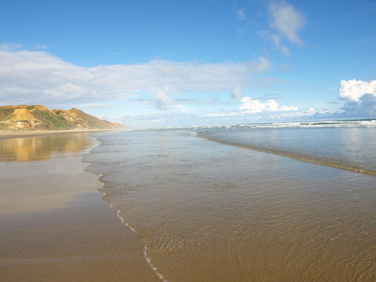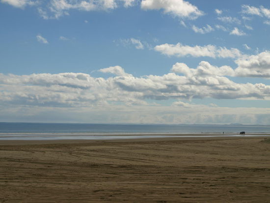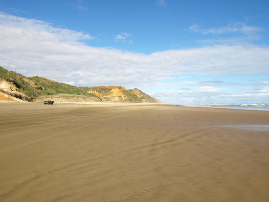 Ich fuhr ersteinmal zum Strand von Ahipara, der mit dem Auto befahren werden kann. Ein Allradfahrzeug war am Strand unterwegs aber sonst war nichts los. Von hier aus könnte man auch einen Teil der Strecke zum Cape über den Strand fahren, den sogenannten 90 Mile Beach, aber ein geeignetes Fahrzeug sollte man dazu schon haben. Ich bin mit meinem Mietwagen natürlich nicht auf den Strand gefahren, sondern habe die "normale" Straße benutzt.