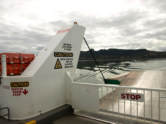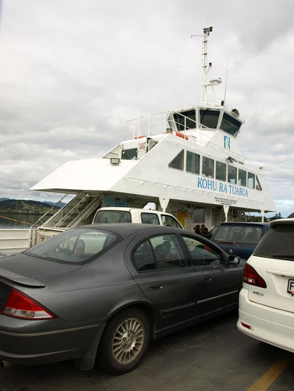 Ich fuhr von Ahipara auf direktem Weg zur Kauri-Küste und hatte mich entschlossen die kurze Fährüberfahrt von Kohukohu nach Rawene zu nehmen und nicht den Umweg durchs Landesinnere über Kaikohe zu machen. Ich hatte Glück, denn als ich bei der Fähre in Kohukohu ankam war genau noch ein Platz für mein Auto frei und sobald ich an Bord war leget sie auch schon ab. Es war wieder so eine Straßenfähre und die Überfahrt dauerte nur knappe 20 Minuten.