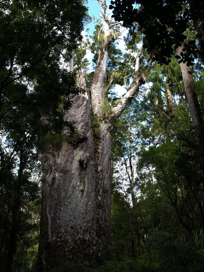 Der größte bekannte Kauri Baum - Tane Mahuta "Lord of the Forest" - 51 Meter hoch mit einem Umfang von 14 Metern - das Volumen seines Stammes beträgt 244,5 Kubikmeter - der Stamm selber ist nur 18 Meter hoch