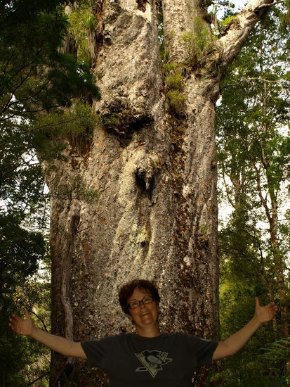 Und dann das Ziel des Kauri Walks - der zweitgrößte bekannte Kauri Baum - Te Matua Ngahere "Fahther of the Forest". Dieser ist nicht so hoch, aber dafür etwas breiter. Er ist 30 Meter hoch und hat einen Umfang von 16,5 Metern. Sein Stammvolumen beträgt 208 Kubikmeter und der Stamm selbst ist nur 10,5 Meter hoch. Dieser Kauribaum ist der älteste Kauribaum und soll zwischen 2000 und 3000 Jahren alt sein. Da er ja noch nicht gefällt wurde ist "sein" Alter nur zu schätzen.