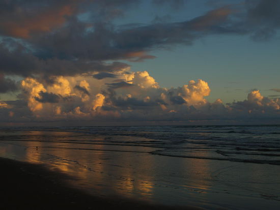 Um mir im Anschluss den Strand anzusehen. Der Strand vor Baylys Beach ist der Ripiro Beach und diesen darf man mal wieder mit dem Auto befahren. Dieser Strand ist der längste zu befahrene Strand in Neuseeland. Er ist 101 Kilometer lang und reicht von Maunganui Bluff im Norden bis nach Pouto im Süden. Ich bin natürlich nicht mit meinem Mietwagen drauf gefahren, sondern hab ihn nur zu Fuß etwas erkundet.