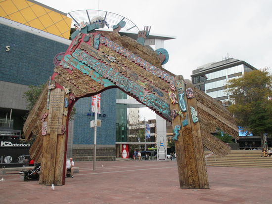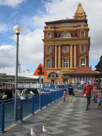 Für den Sonntag, den 13. April hatte ich mir auch nichts besonderes vorgenommen. Ich wollte einfach nur ausschlafen und dann in Auckland bummeln gehen. Ich nahm die Fähre kurz vor 12 Uhr. 20 Minuten später kam ich in Auckland an, denn auf dem Hinweg nach Auckland legte die Fähre noch an zwei weiteren Haltestellen an wegen des "eingeschränkten" Wochenendfahrplanes. Dafür war aber mein Pier der erste Halt auf dem Rückweg. Der "Umweg" über die zwei anderen Piers hatte für mich sogar den Vorteil, dass die Fähre unter der Harbour Bridge durchfuhr und ich somit einen wunderschönen Blick auf die Skyline von Auckland mit Brücke hatte. Auckland selber ist jetzt nicht so aufregend. Ich ging einfach die Queenstreet mit vielen Souvinierläden auf und ab und machte in einigen Cafes eine Pause.