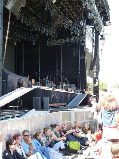 Fazit: Ich war um 16:15 Uhr im Stadion auf dem Feld an meinem Platz in der ersten Reihe links der Bühne, direkt vor einer kleinen Miniplattform