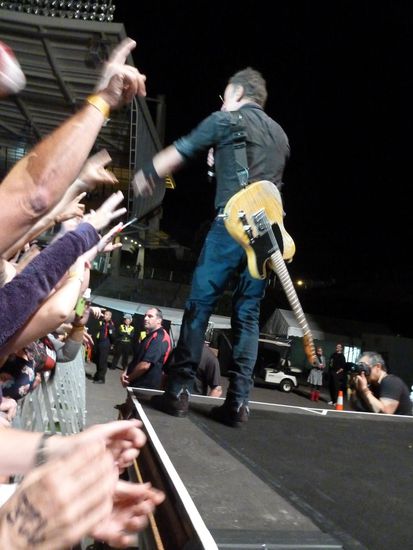 Also für mich war es ein KLASSE Konzert. Ich habe viele nette Menschen kennengelernt, z.B. Guido und Anita aus Belgien. Für Guido war es das 157. Bruce Konzert. Da bin ich mit meinen jetzt gerade mal 9 Bruce Konzerten ein absoluter Anfänger. Dann war da noch August, ein Neuseeländer aus Wellington mit Wurzeln in Samoa und Deutschland, Cathrin aus Dunedin, Neuseeland, mein 2 Mittaxifahrer auf der Hinreise und noch mal 6 zusätzliche Mitfahrer auf der Rückreise. Ach ja dann gab es noch Gerry (aus der Nähe von Christchurch), der hat mich gleich mal zu sich auf die Farm eingeladen wenn ich dann in Christchurch bin, aber da muss ich erstmal schaun, wo genau die liegt und ob das in meinen Routenplan passt. Übers Konzert selber schreib ich jetzt weiter nichts mehr. Wenn jemand schon mal bei Bruce Springsteen war, der weiß das Worte nicht ausreichen, ein Konzert zu beschreiben. Ich stelle noch ein paar Bilder ein, aber so dolle sind sie nicht.