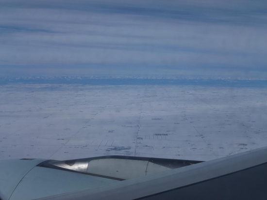 Landeanflug auf Calgary...zur einen Seite endlose Weite bis zum Horizont, auf der anderen Seite der erste Blick auf die Rocky`s