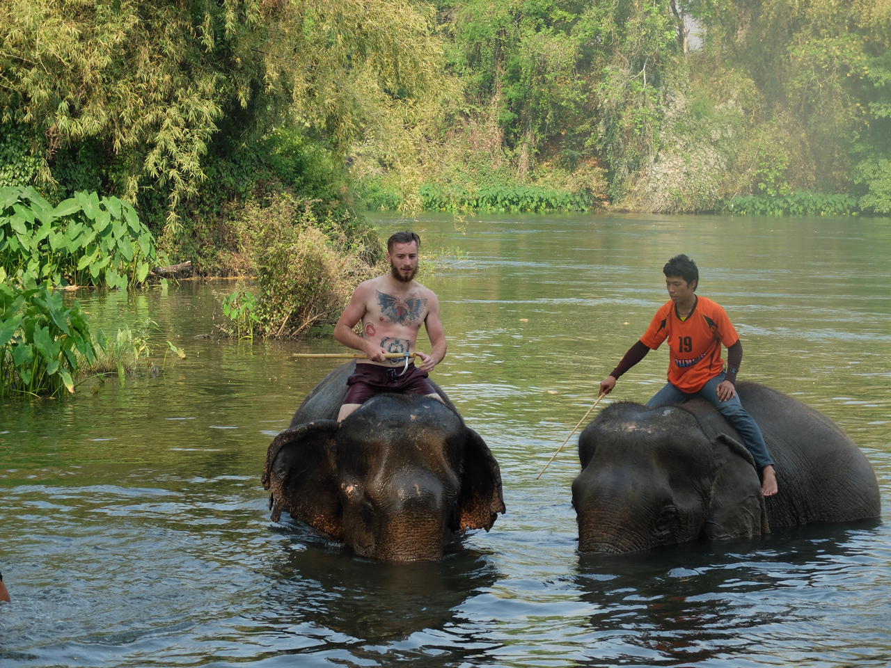 Unsere Guides waren one boy from Sidney and one girl from Holland. Zuerst haben wir die Elefanten gefüttert und anschließend sind die Tiere baden gegangen. Danach haben wir sticky rice gekocht und vorher pumpkin gehackt. maybe first some pictures showing this..