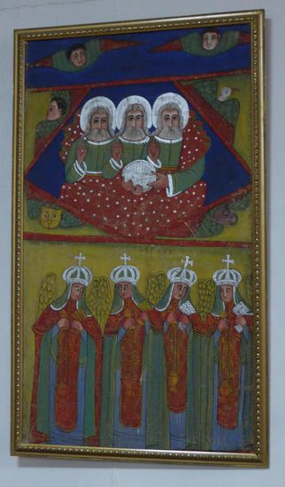 Im Obergeschoß wird dann die Sammlung christlicher äthiopischer Kunst gezeigt, eine umfassende Kollektion von Handschriften, Gemälden und Kreuzen.