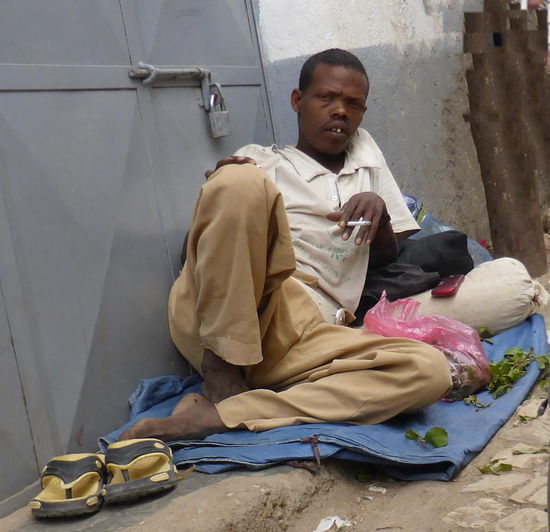 nur die älteren Herren sitzen an den Häuserwänden