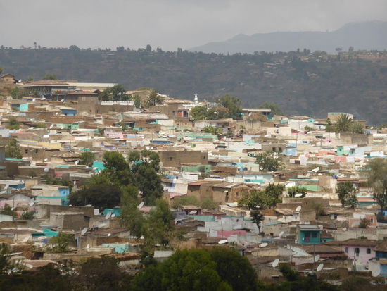 An der Hauptstraße stehen viele zweistöckige Häuser, ein in Äthiopien seltener Haustyp, der gegar genannt wird. Die Balkone sind aber in der Regel erheblich restaurierungsbedürftig.
